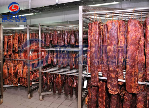 這一階段主要的制約因素是溫度的控制,為了加強(qiáng)干燥速度,溫度要升高到6065度之間,烘干時(shí)間控制在1012個(gè)小時(shí),相對(duì)濕度控制在35%左右。牛肉烘干最終濕度控制在15%以下。