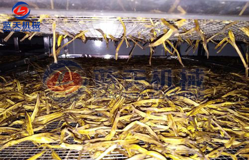 1、黃花菜烘干前要進行高溫殺青處理,前期1個小時內把溫度升到70°C,然后再烘干30分鐘左右。這1個小時內不排濕。