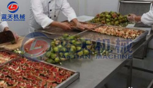 無花果可以整顆烘干,也可以切分后進行烘干,切分后的無花果干燥時間要快 過整顆烘干,首先清洗干凈無花果,去除其果柄,再進行切分處理,可以對半切,也可切成塊狀條狀,然后分步進行脫皮、護色等處理。