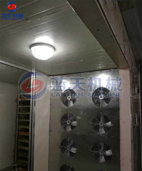 3. 茶葉烘干房采用全封閉結構,熱空氣箱內循環,節能高效。采用內置式耐高溫循環風機、大大減小熱損失、強化了熱量的傳遞。烘干房可增設有可調式均風板,可上下調節開度,使箱內上下溫度均勻。保溫層厚100mm,材質為聚氨脂板材。烘車烘盤為行業統一標準,烘盤網盤適用于多行業,互換性強。自動恒溫控制、工作時間定時,機械化生產,批次產品質量穩定。庫板應客戶要求可采用304不銹鋼材質制造,符合國家對食品衛生的需求。