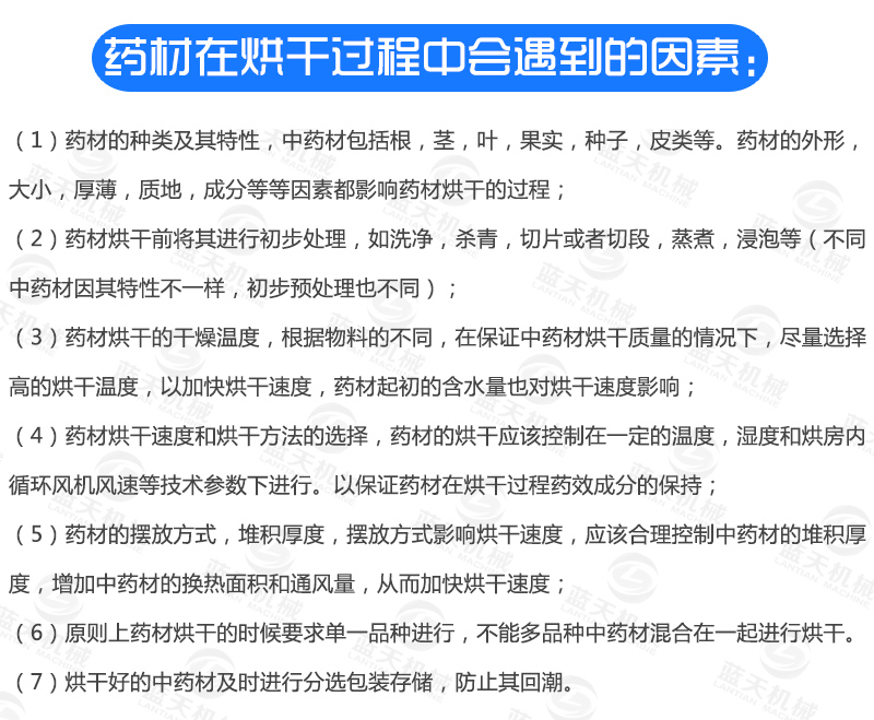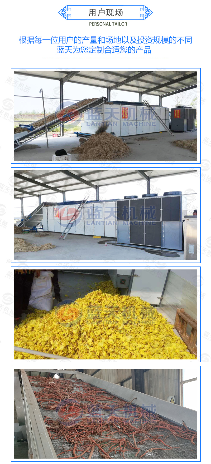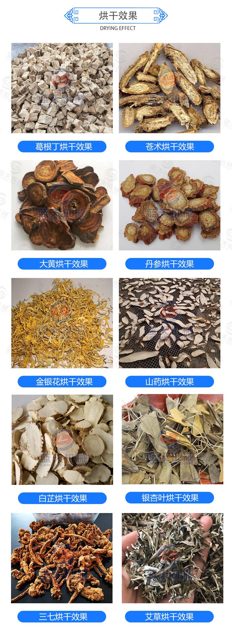 5、在用大型藥材烘干設備中藥材烘干過程中,應通過觀察孔,隨時觀察其顏色及水分的變化,烘干過程排潮好,藥材的顏色就會鮮亮;下層忌烘的過干才出烘干機,適當的含水率放出后攤晾即可。