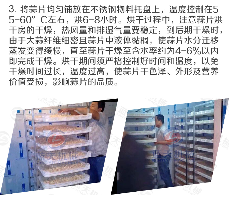我們來介紹用蒜片烘干機脫水蒜片的烘干工藝 :