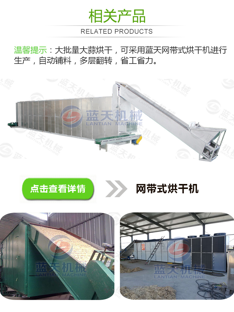 這些就是蒜片烘干機烘干大蒜片的基本流程了,希望能給您帶來些幫助,如果您看后想了解大蒜烘干機價格可以咨詢我們網站客服或直接電話聯系我們,歡迎您的光臨!