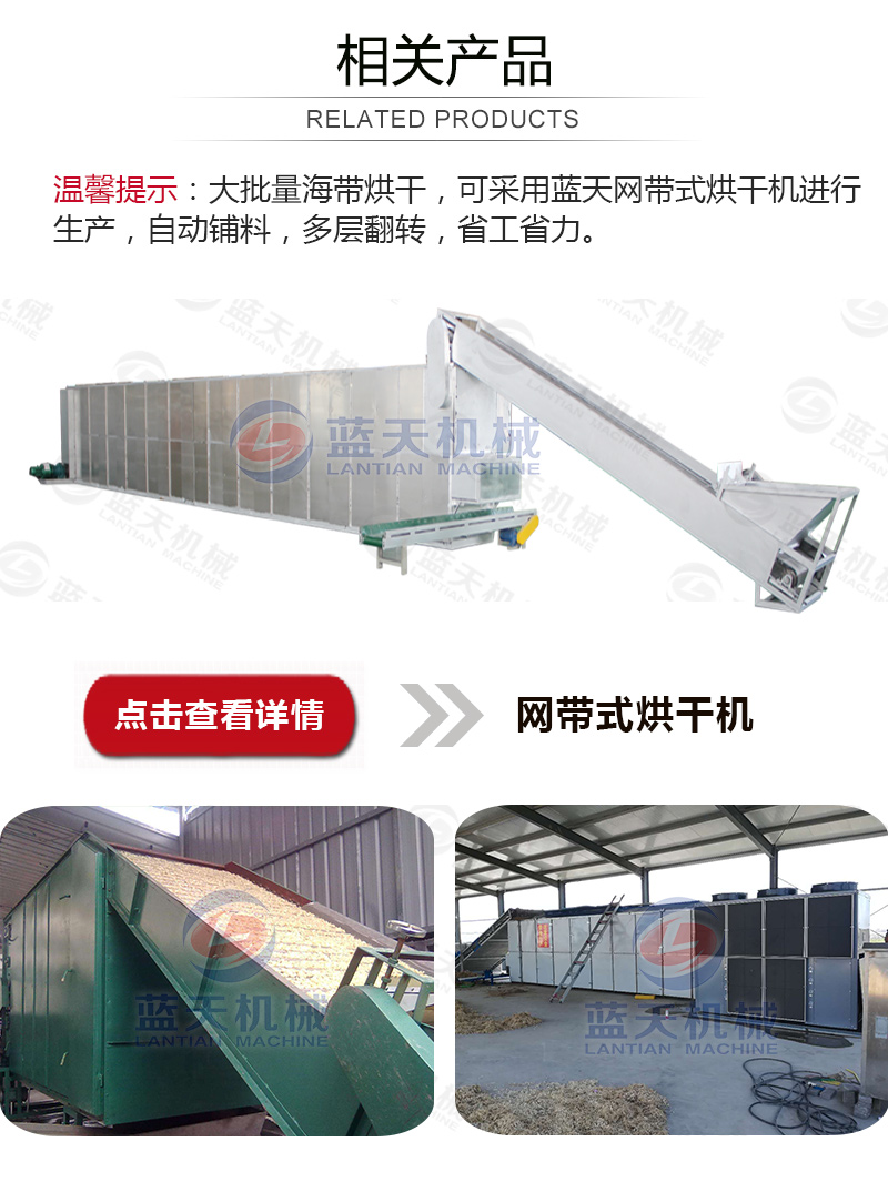 海帶需要烘干,很多人都不知道吧。海帶在打撈上來以后,是要進行加工的,先要清洗掉表面上的那些垃圾,然后進行烘干干燥,再打包進行發貨。好的海帶是烘干得好的海帶,烘干海帶好的方法就是使用海帶烘干機。