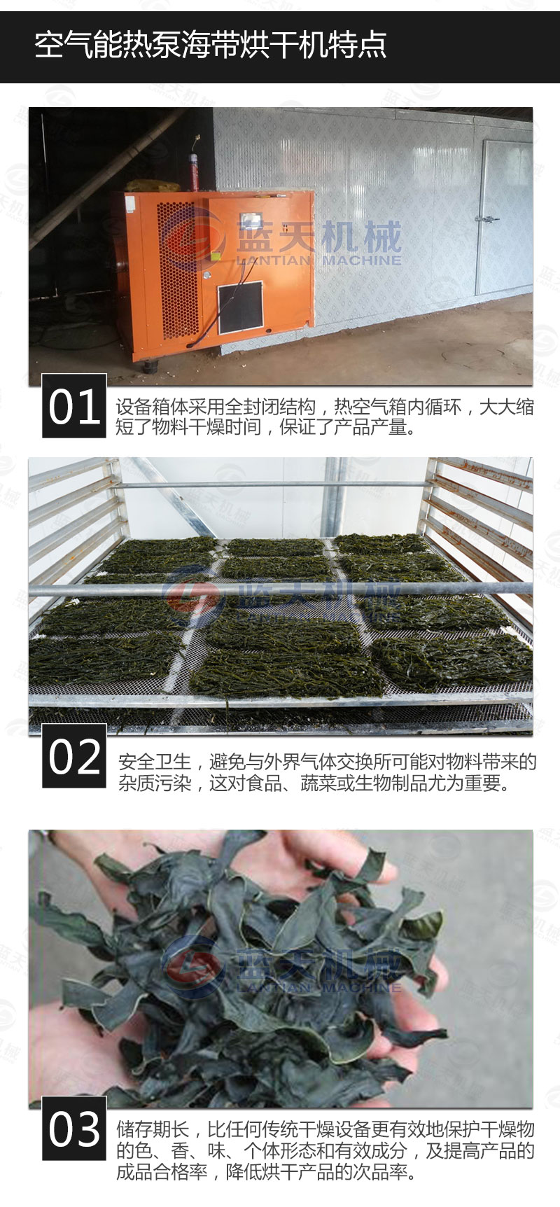 3、烘干時間—海帶烘干一般周期比較長,快速烘干一般都會破壞烘干質量;