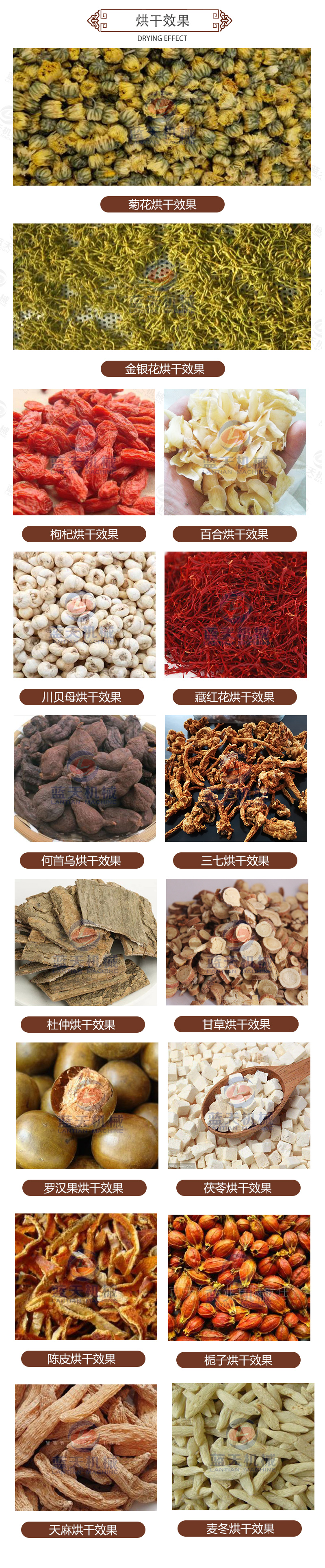 藥材烘干是為了排除水分,抑制酶的活動,防止有效成分分解,便于長期貯存備用。藥材烘干加工時應盡量保持生藥的外觀、氣味和有效成分的含量不變。根據氣候、設備條件、藥材性質,選擇合適的藥材烘干機以及烘干工藝。
