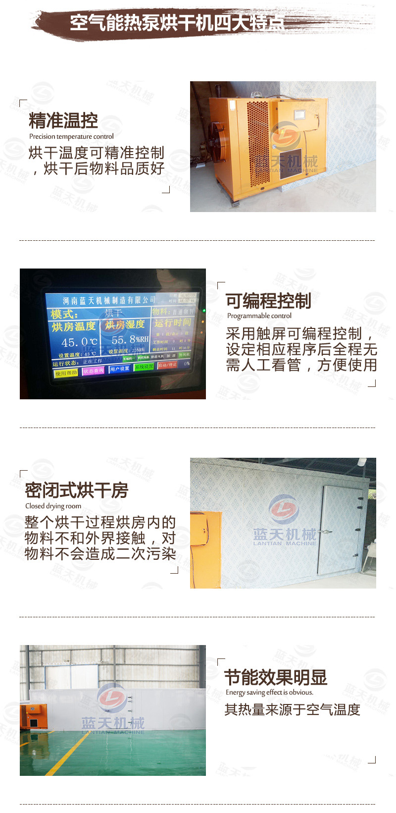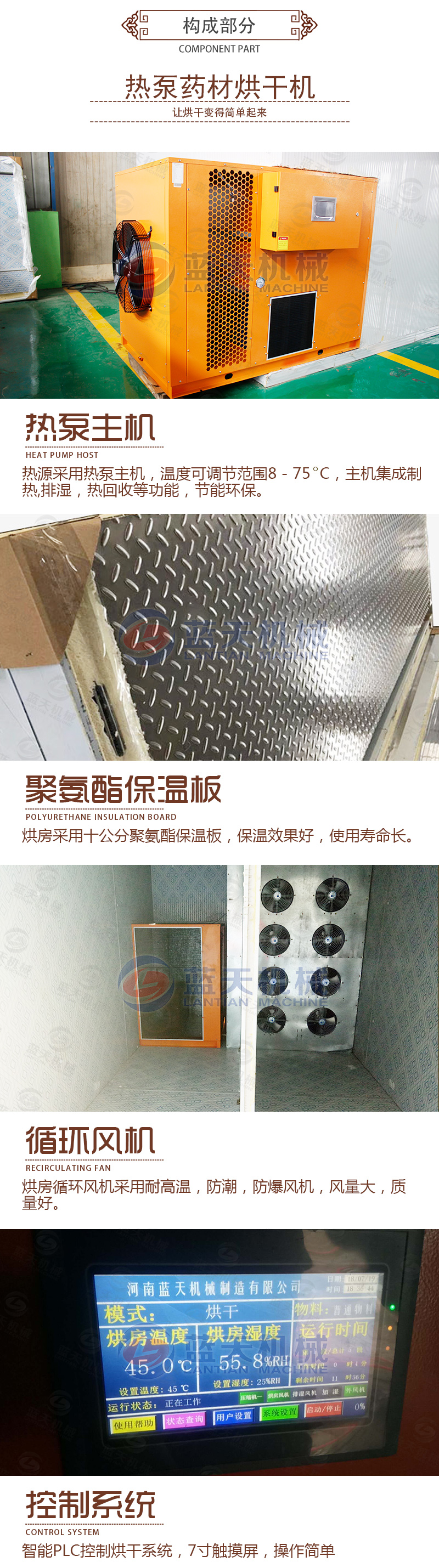 使用藥材烘干機能夠有效的保障被烘干干燥藥材的品質,顏色、外觀形態和有效成分均能得到妥善的保護;藥材烘干房烘干過程中不會對藥材及環境造成污染、沒有廢水、廢氣、廢渣排出,環保節能;藥材烘干房采用全自動溫度控制,操作簡單,可全天候24小時工作,不用專職人員看守;能耗低,保障物料烘干品質的同時,藥材烘干機設備價格大幅度減少烘干的成本,經濟性好。