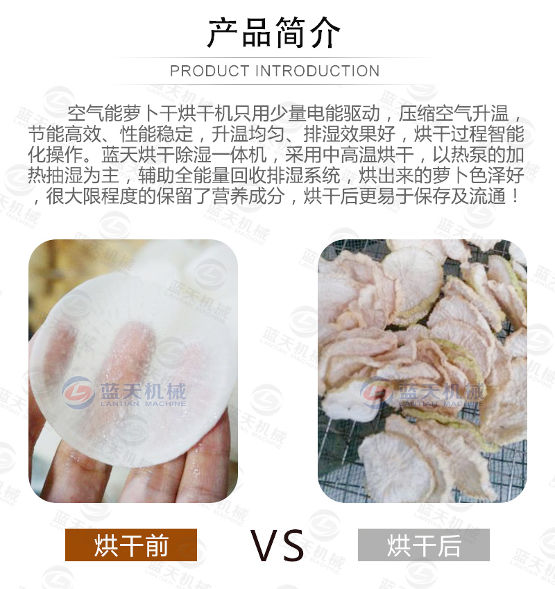 空氣能熱泵蘿卜干烘干機,在蘿卜干烘干過程中的優(yōu)點: