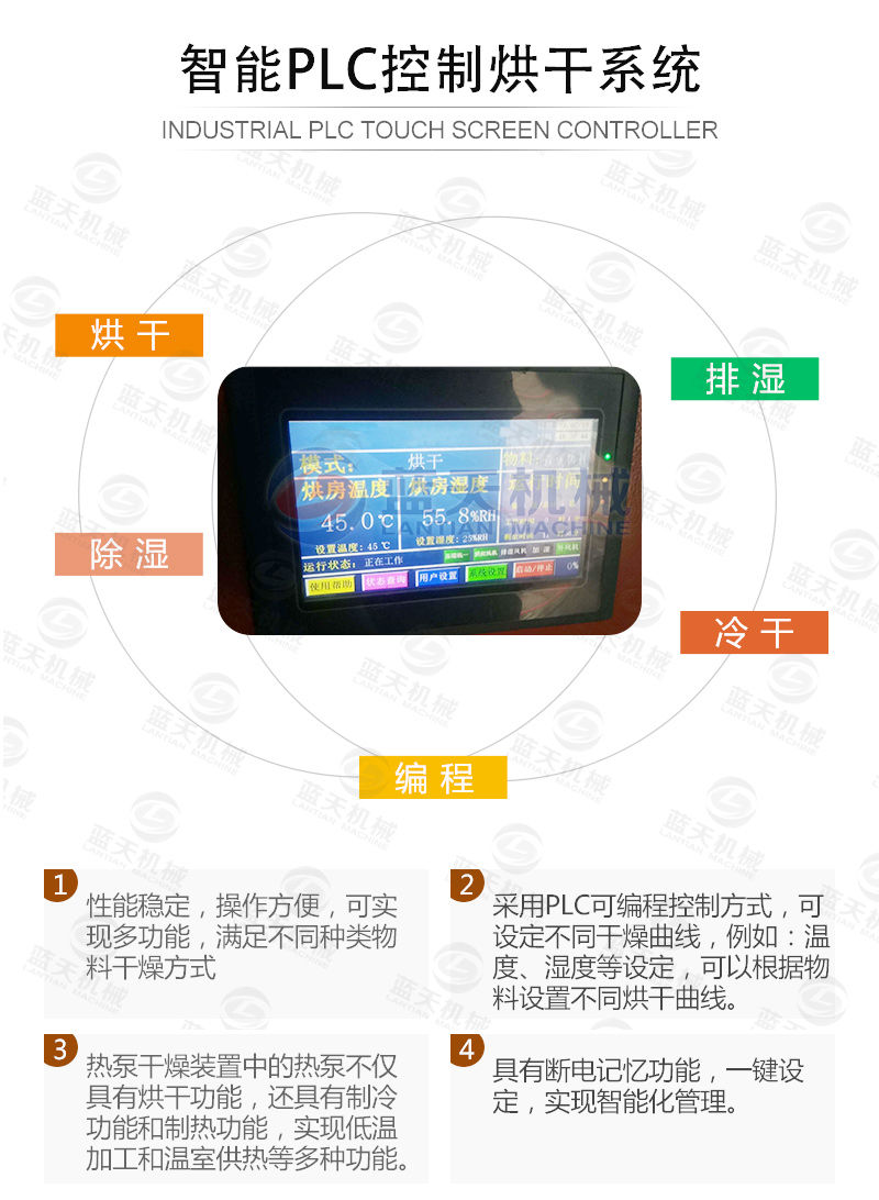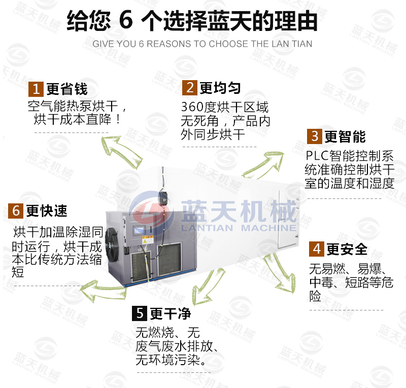 2、烘干時間短。高溫?zé)岜煤娓擅撍卟松a(chǎn)工藝,所需用的時間不會超過8h,一般從預(yù)熱到出產(chǎn)品4h即可完成。